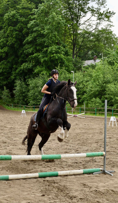 Han är lyhörd och lyssnar på ryttarens signaler och hjälper. Men eftersom han är ung och grön kan han ibland ha svårt att förstå vad man menar. Därför är det viktigt att vara tydlig.